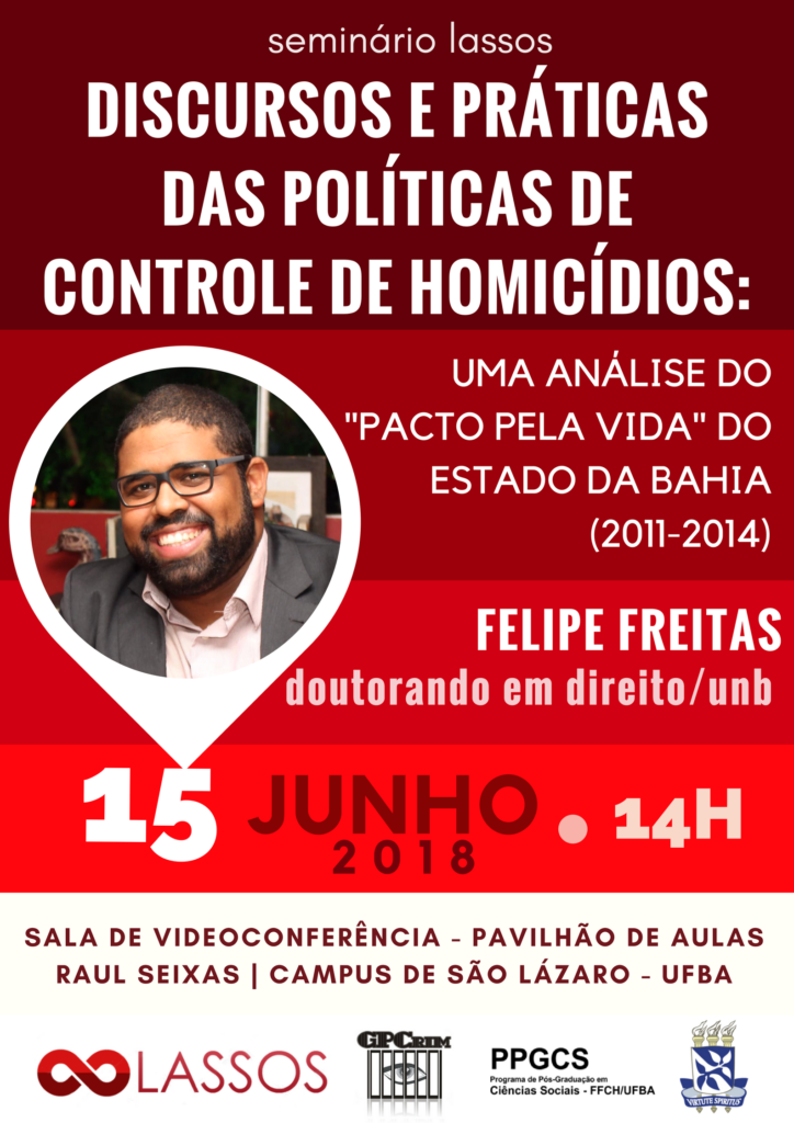 Local: Laboratório de Estudos sobre Crime e Sociedade – LASSOS, Faculdade de Filosofia e Ciências Humanas – FFCH-UFBA, Pavilhão de Aulas Raul Seixas, Estrada de São Lázaro, 197, Federação.