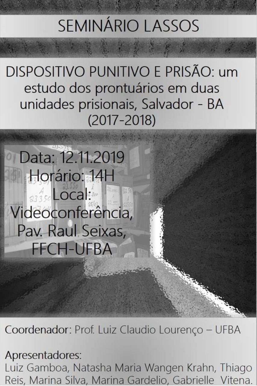 O quê? Seminário LASSOS “Dispositivo Punitivo e Prisão: um estudo dos prontuários em duas unidades prisionais, Salvador – BA (2017 – 2018)”